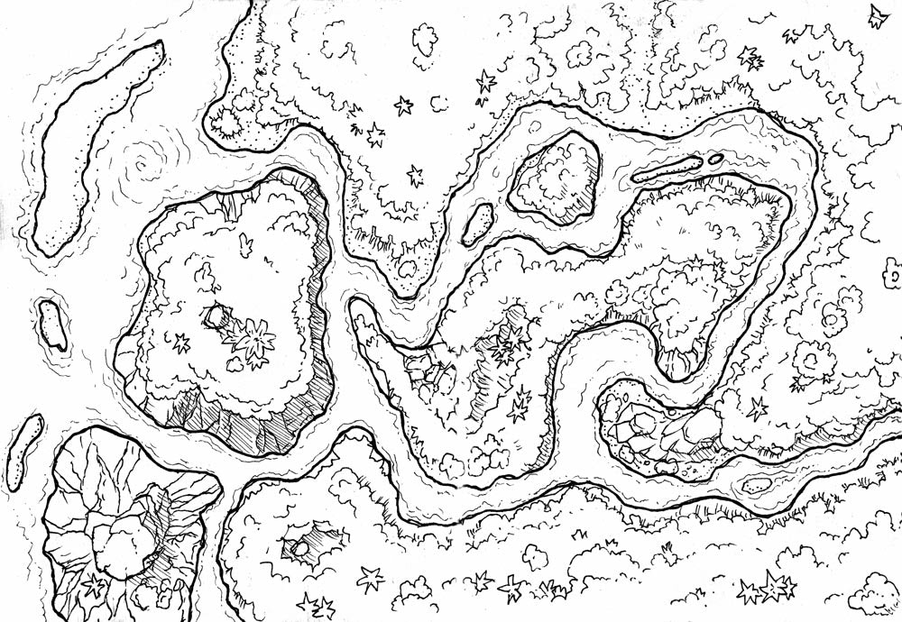 The Adventure Site Collection 1 is a group of 12 different adventure site maps for GMs to fill with beasts and treasure. My hope is that these can inspire GMs with some fun one-shot style adventures! All of these are hand drawn, and most were drawn on real paper and then scanned, a much different process than my normal "all digital" methods.