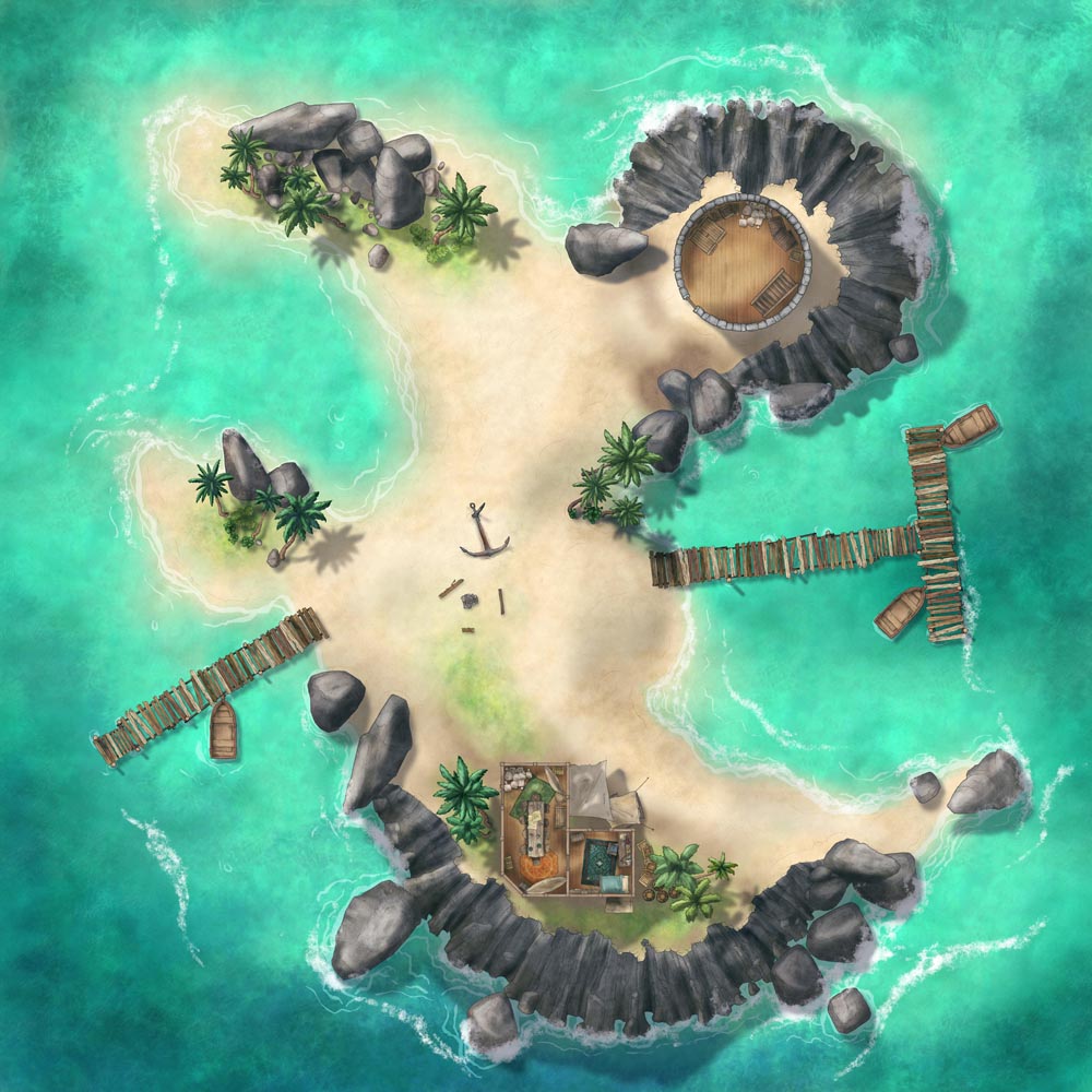 In any seafaring campaign, you'll need all sorts of ships. Once those have been gathered, you need destinations for them to visit, and the most used of these? Islands! Cursed ruins abound, tropical beasts can lurk behind every tree, and the players are positive there's a treasure chest buried somewhere nearby. So, as the first of a series of island maps designed to fill this need, I created the Anchor Island map set!