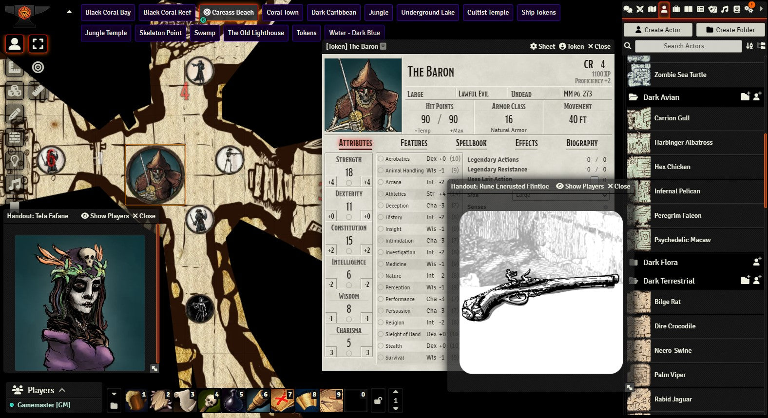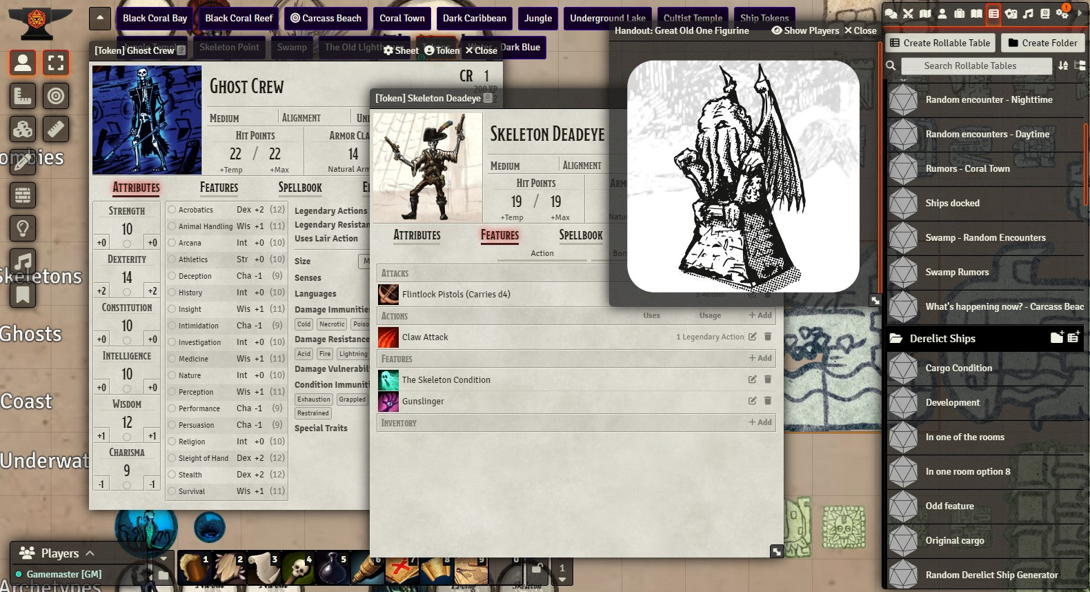 - 100+ tokens for monsters, NPCs, random pirates, and ships for naval combat.