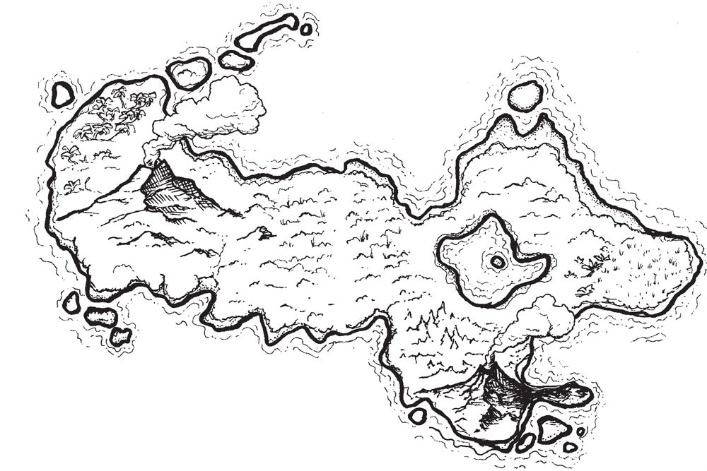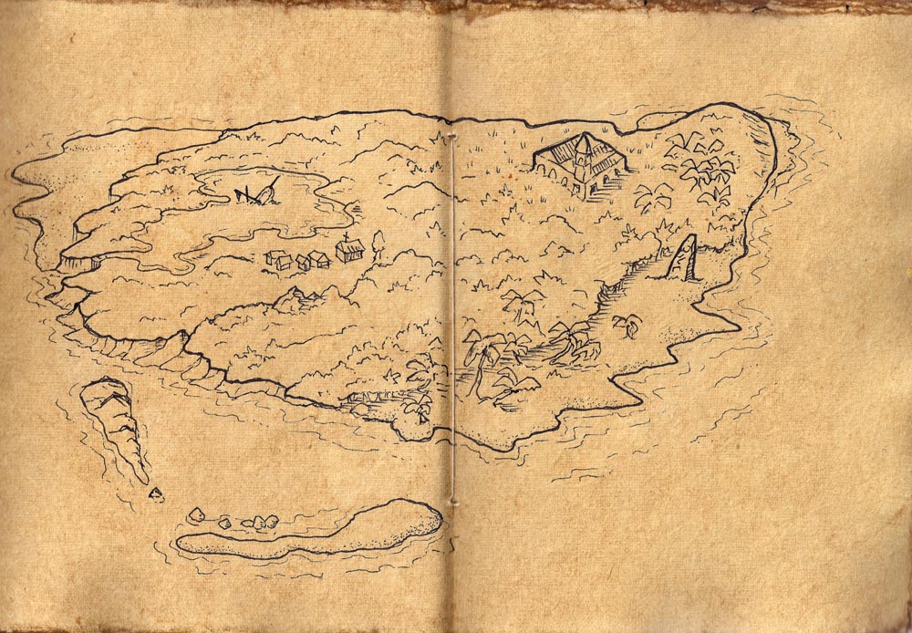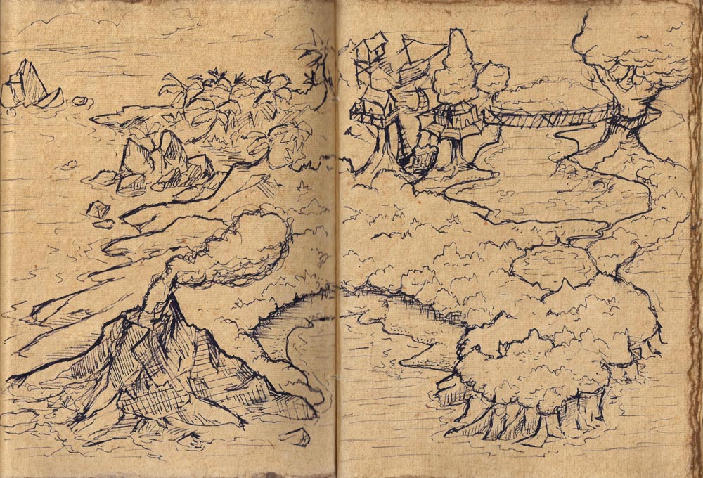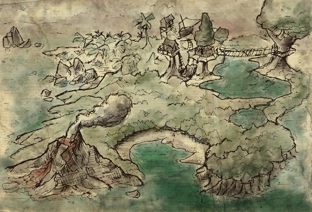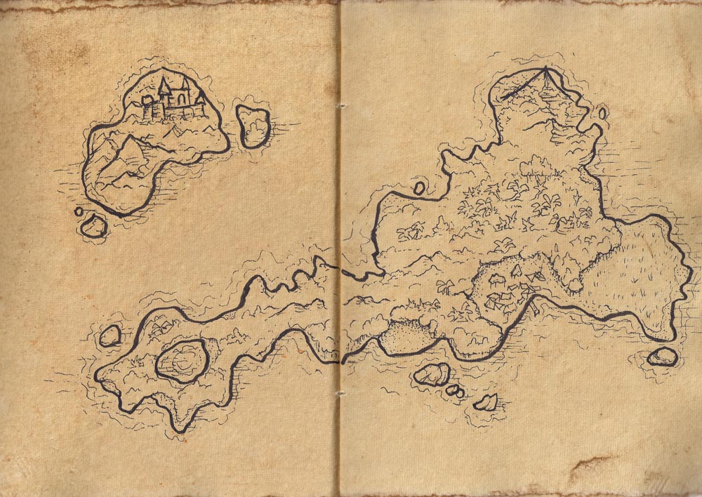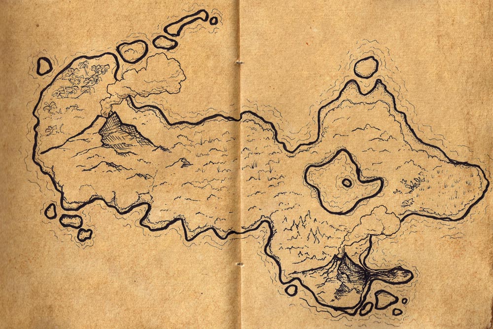 - Double Volcano Island - Old Book (48x32)