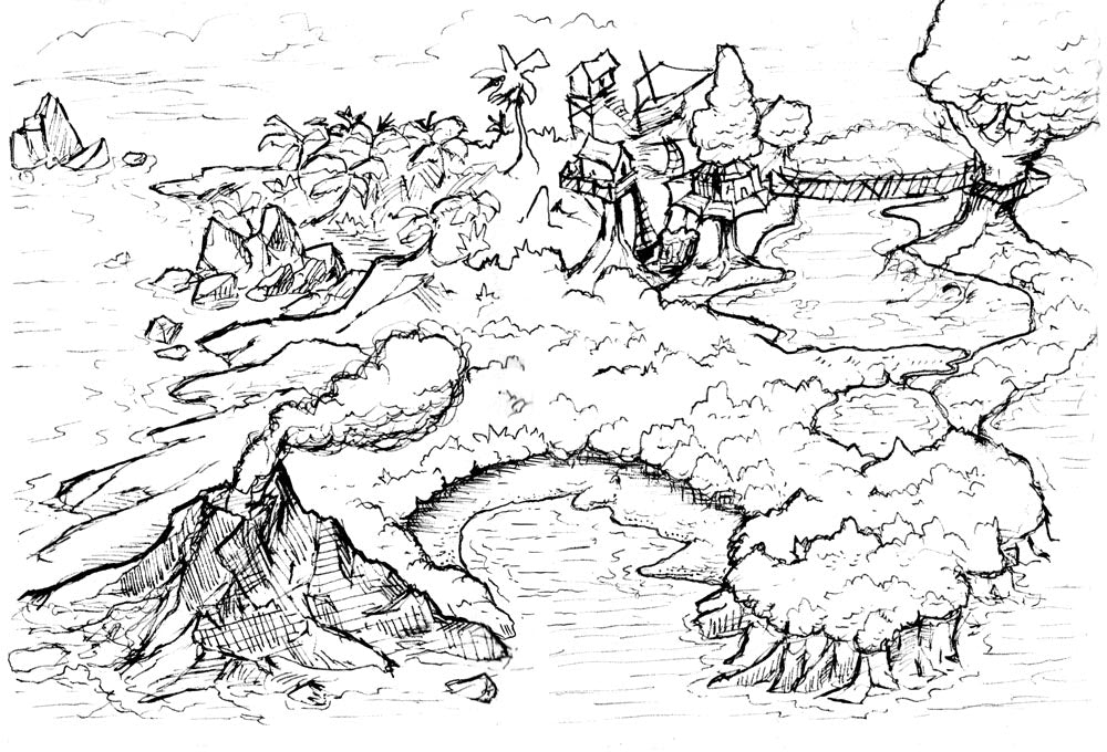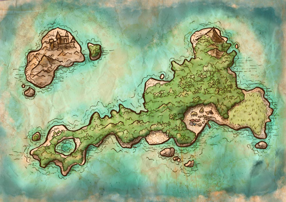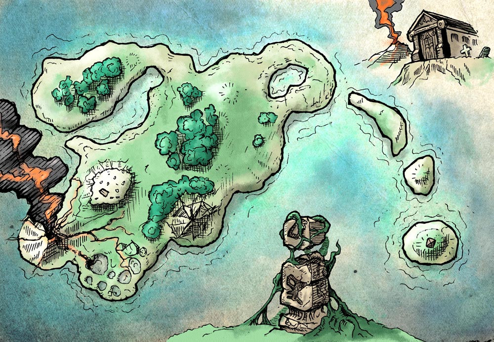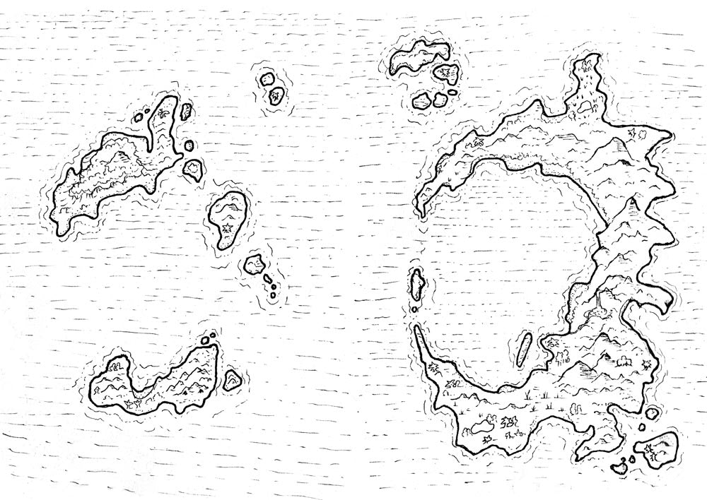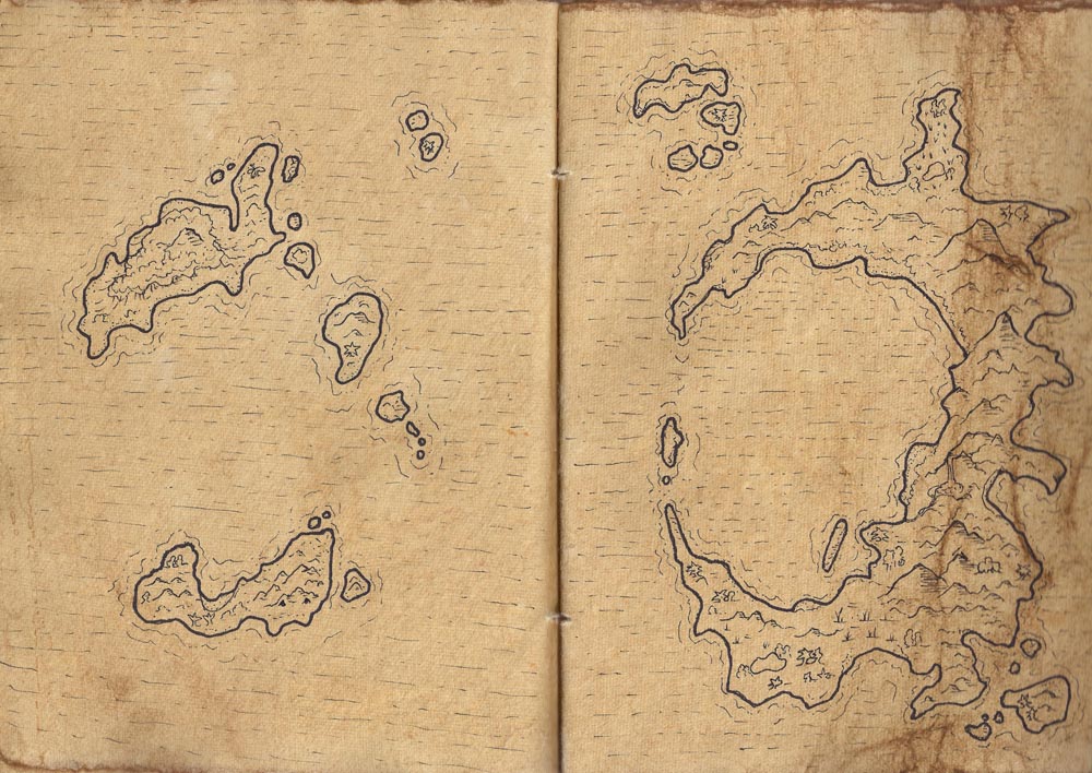 To accompany the Generator and inspire you, I've included some island maps, which I've given the finishing touches in four different styles: Original, Dark, "Old Book", and Black & White. Some of these were made with this generator, and a couple were even made by kids at Gamehole Con!