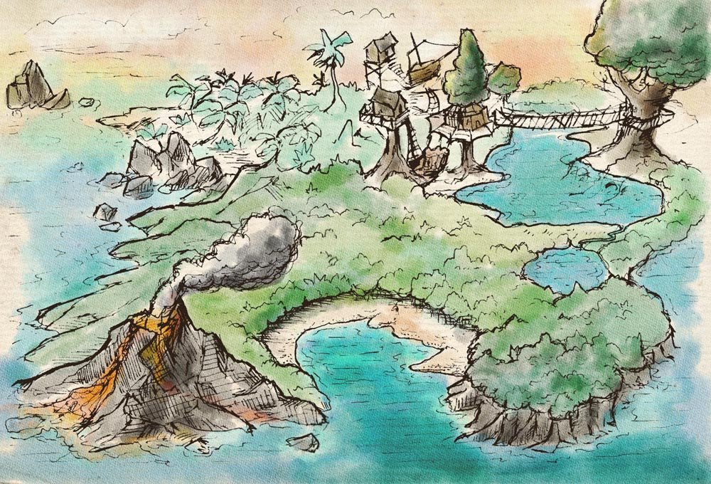 - Double Volcano Island - Color (48x32)
