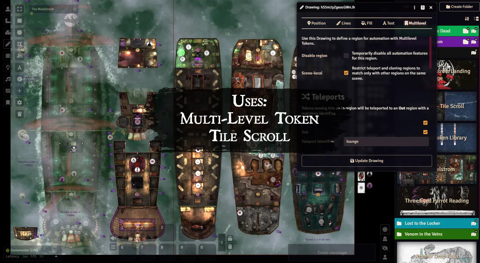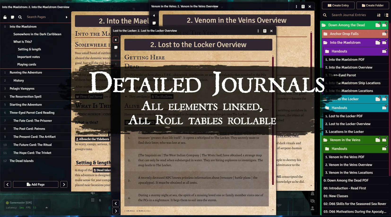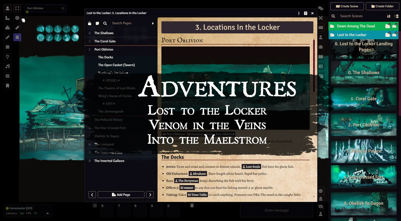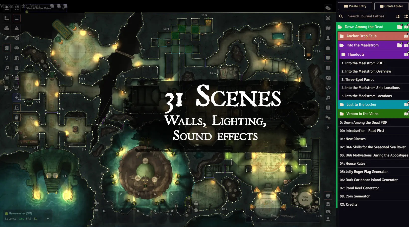 - Each adventure is broken into its own module for easy loading. Anchor Drop Falls is included in this compendium pack.