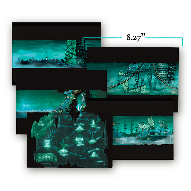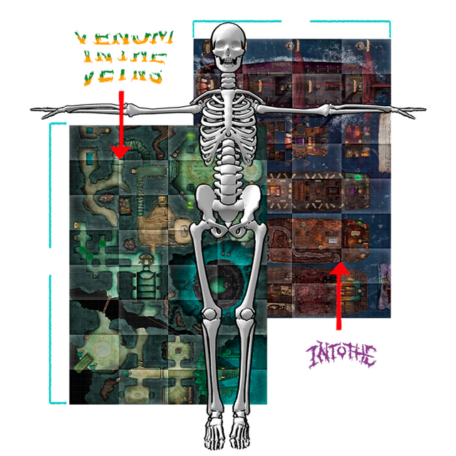 Truly massive, A0-sized (33.1"x46.8") large format, full battle maps for Venom in the Veins and Into the Maelstrom (adventures included in Down Among the Dead), plus a pack of 5 location handouts and 3 double-sided Monster handouts for Lost to the Locker!