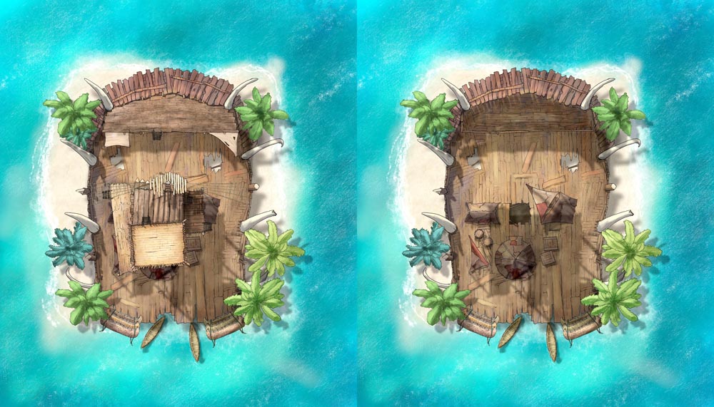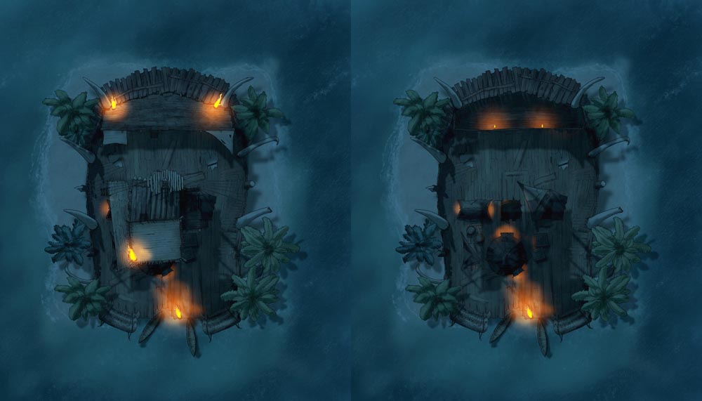 Along with the Day, Night, No Weapon, and Ghost Ship variations, I've made the raft into a Goblin Treehouse and a Goblin Island Fort. Choose your goblin adventure, then customize to fit your needs with the 32 PNG assets.