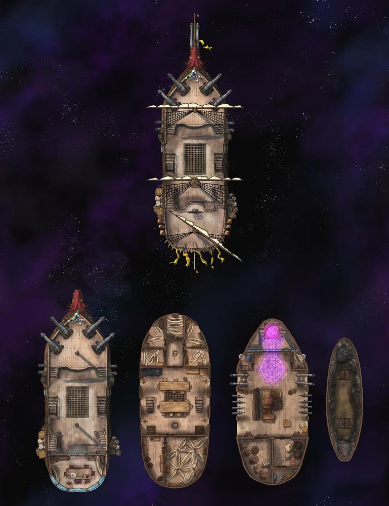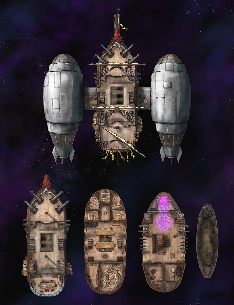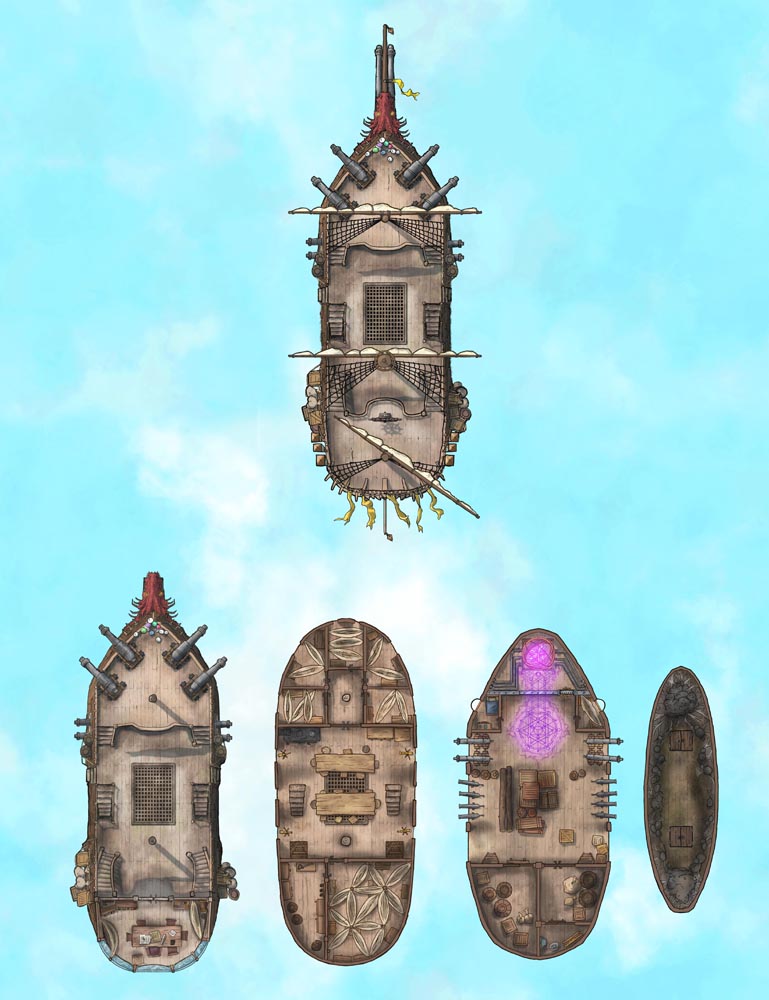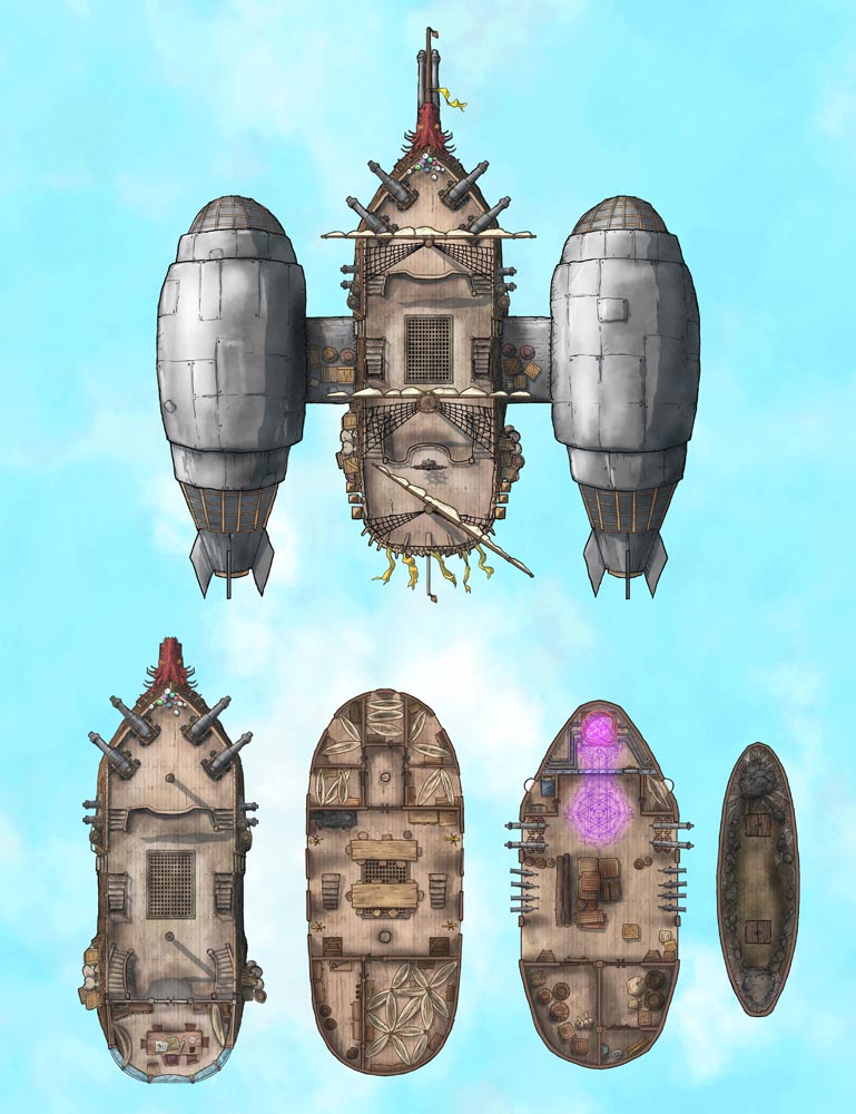 It's also part of a group of airships/Spelljammer ships from the following awesome creators: Borough Bound, Cze & Peku, Tabletop RPG Music, Venatus Maps, & Zach Moeller.