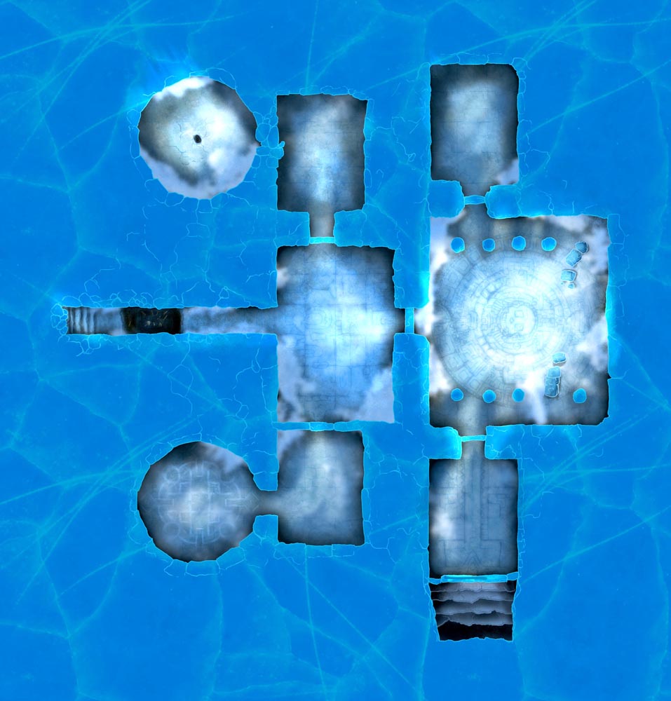 In the Jungle Temple map, I was channeling Indiana Jones vibes, which will become apparent as you fill the rooms for your players. Seven temple variations include embedded in Ice, a wholly submerged variant, one flowing with lava, and more. Also, I’ve created an isometric map of the temple – both with and without location numbers.