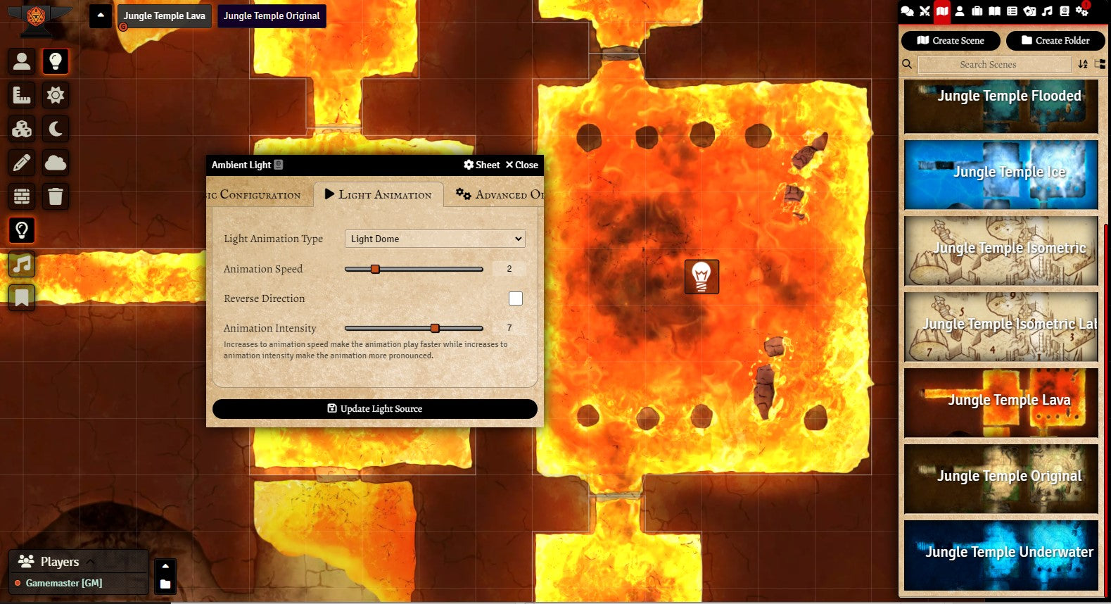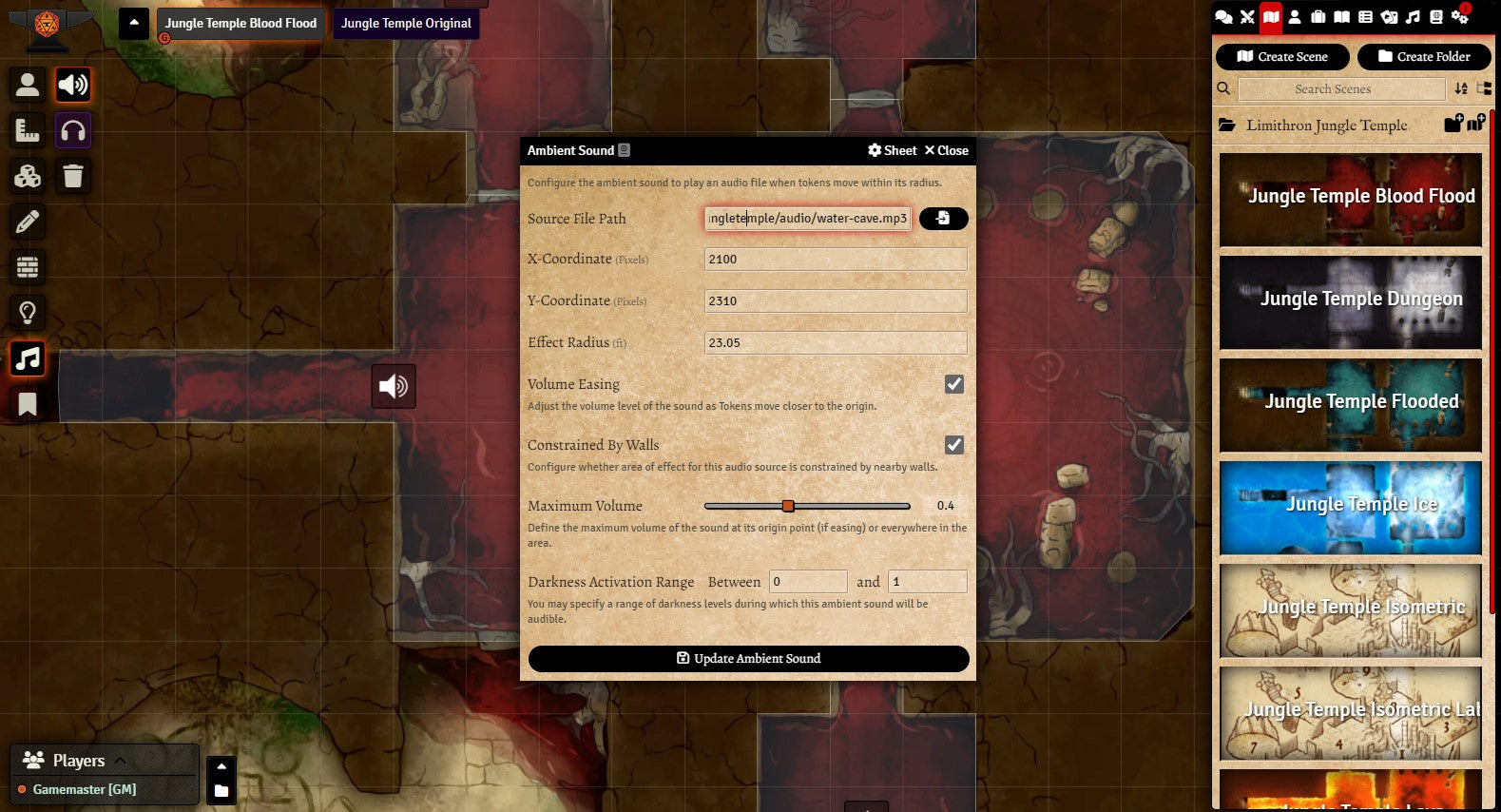 v11 Sounds, walls, and lighting are preset. The Isometric map is configured with walls if you want to give it a shot, or you can delete them or just use it as a GM guide.