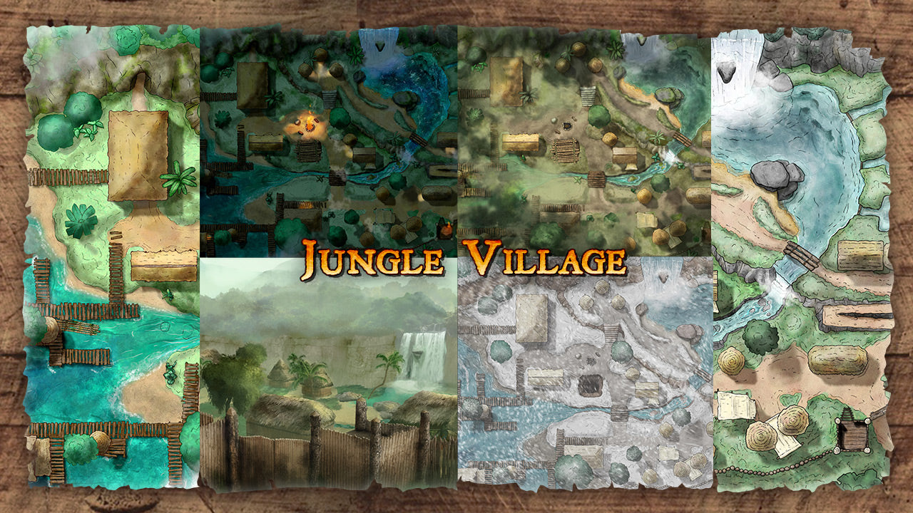 This release includes 13 variations of the village map, a concept art handout, and swamp raft and bamboo jail cell tokens.