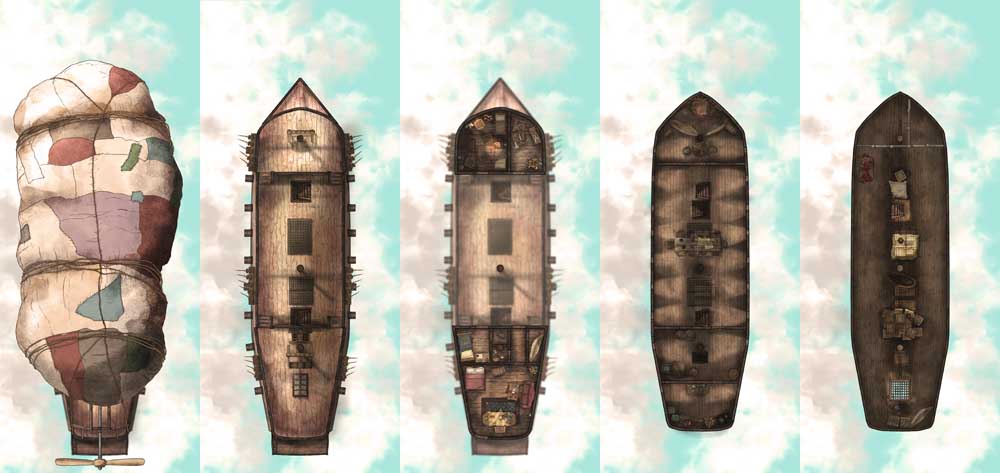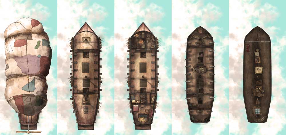 You'll find the 5 deck frigate (original, pirate, and navy) which is perfect for the frigate, 5th rate Man of War, and 6th rate Man of War in Limithron's Guide to Naval Combat, as well as an airship, and a special Chuwen Kan's ship in case the mummy from The Lost Tomb of Chuwen Kan comes after your players. I also made an underwater version of the Dutchman.
