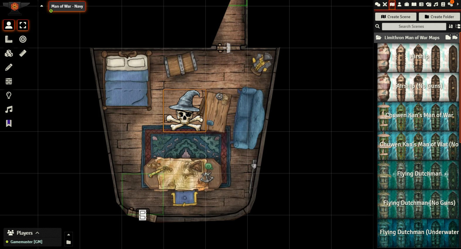 All maps include their respective naval combat tokens, and Legend and higher patrons have access to full sizes battle map tiles with transparent sails for each ship, plus assets to make your own ships - complete with custom sail colors picked by my patrons! There are versions with and without cannons for every map (except the underwater Dutchman).