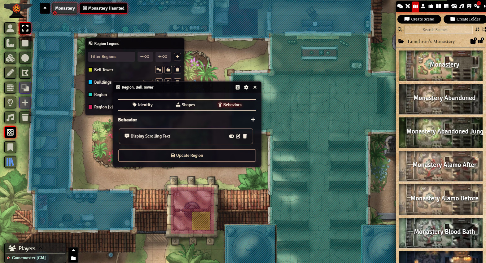 V12 (Works on v13) - Light, walls and sound effects. Regions now introduced to suppress weather effects and dim lighting. + text notice when "climbing" up later. Extra sound effects in bell tower to toggle on bell ringing in sound tab.