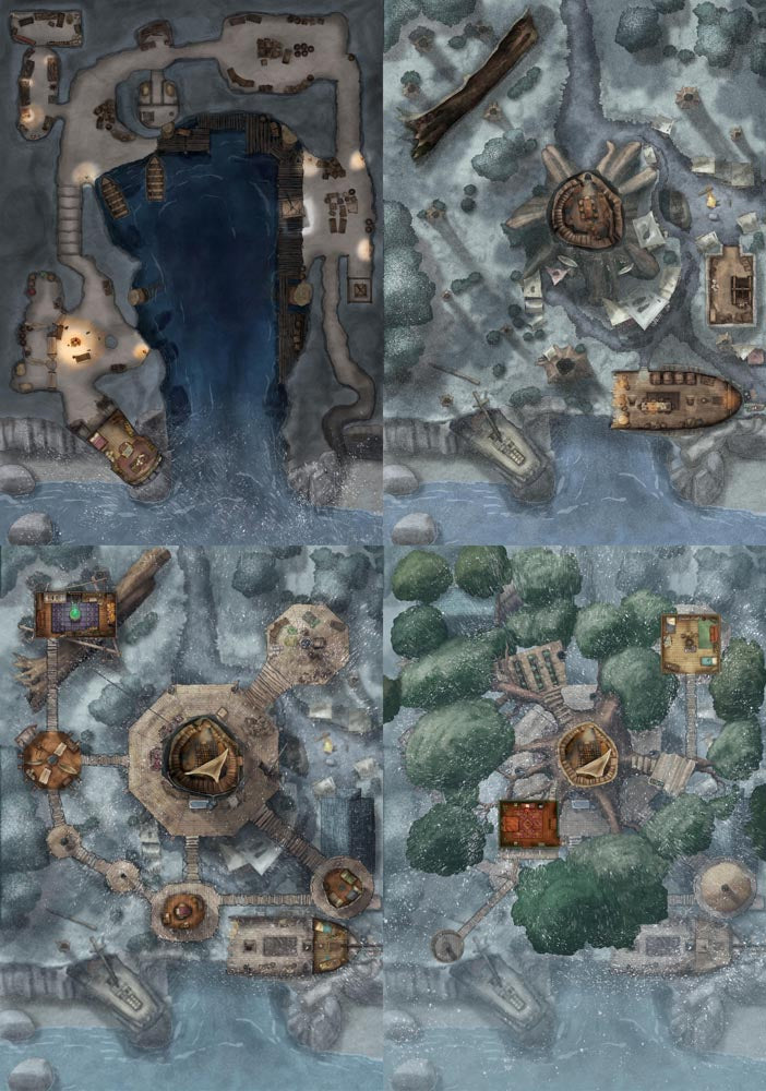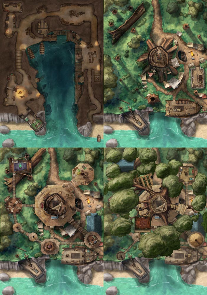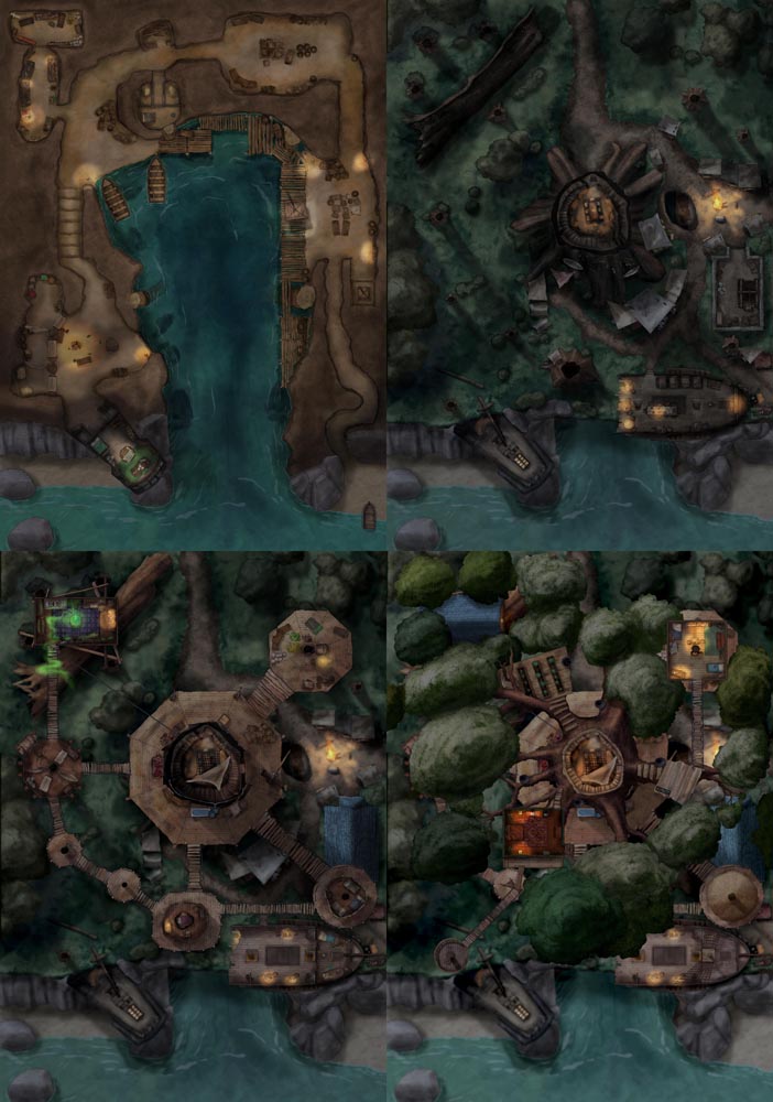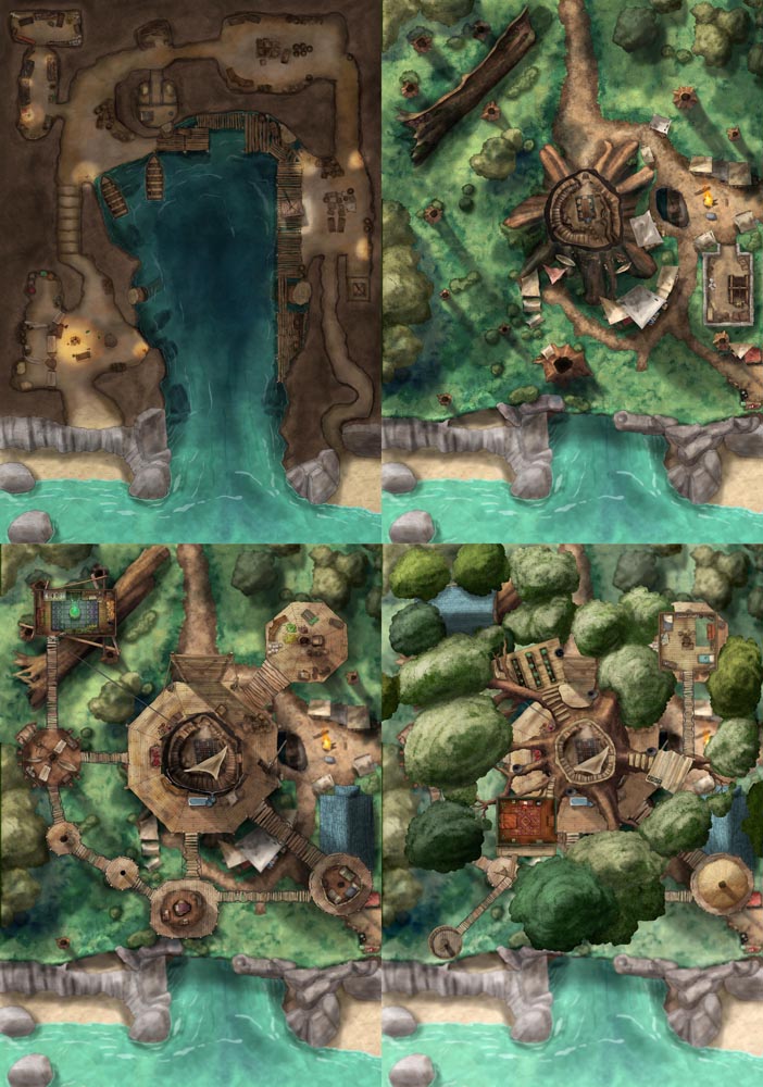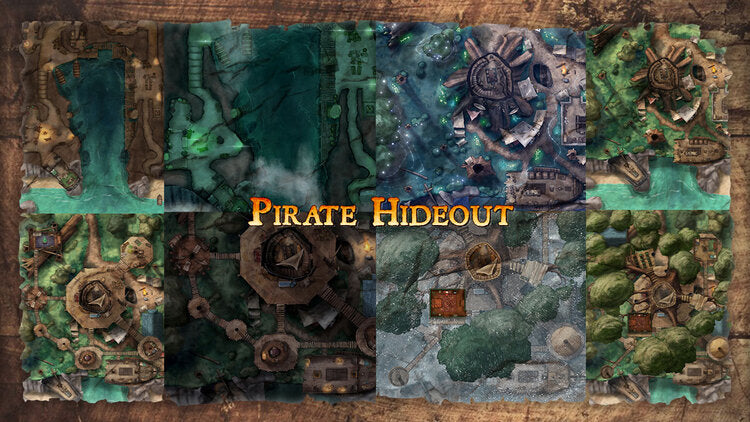 Made possible by the support of my patrons, the Pirate Hideout is 4 levels of exploration goodness. I designed each map in a way that you can either combine them into one massive hideout or use them as several different locations (for example a Haunted Sea Cave, a Forest Bandit Camp, and an Elven Treetop Village).