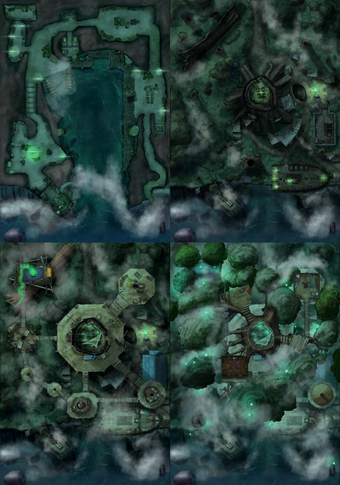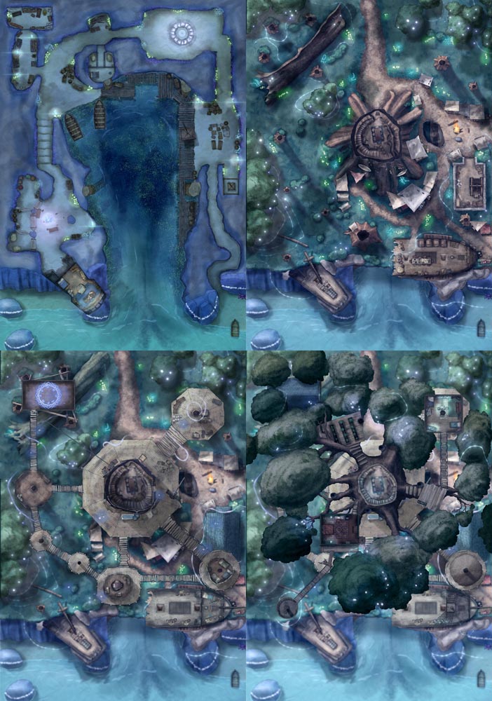 I worked hard to included as many working versions of the maps as I could. There are versions with and without parts of the ship, the forest, props, and the access to the lower level, as well as cropped versions without the coast, so if you use level one as a sea cave you could potentially have this as a totally different location.