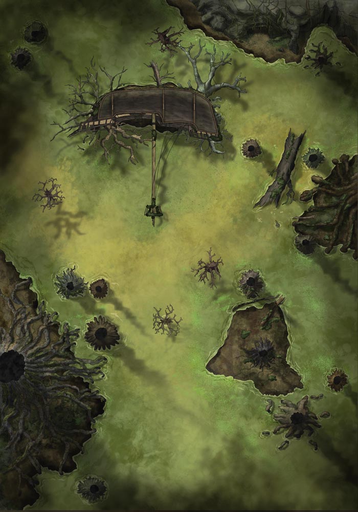 The swamp is a place of mystery for pirates and adventurers alike. Teeming with life – not all of it friendly – the bayou is a place of beauty and danger, where lush plant life barely distracts from fears of decomposition and death. Then add a witch's cabin into the mix, or an ancient shipwreck mired in a bog, and your players will really be on edge.