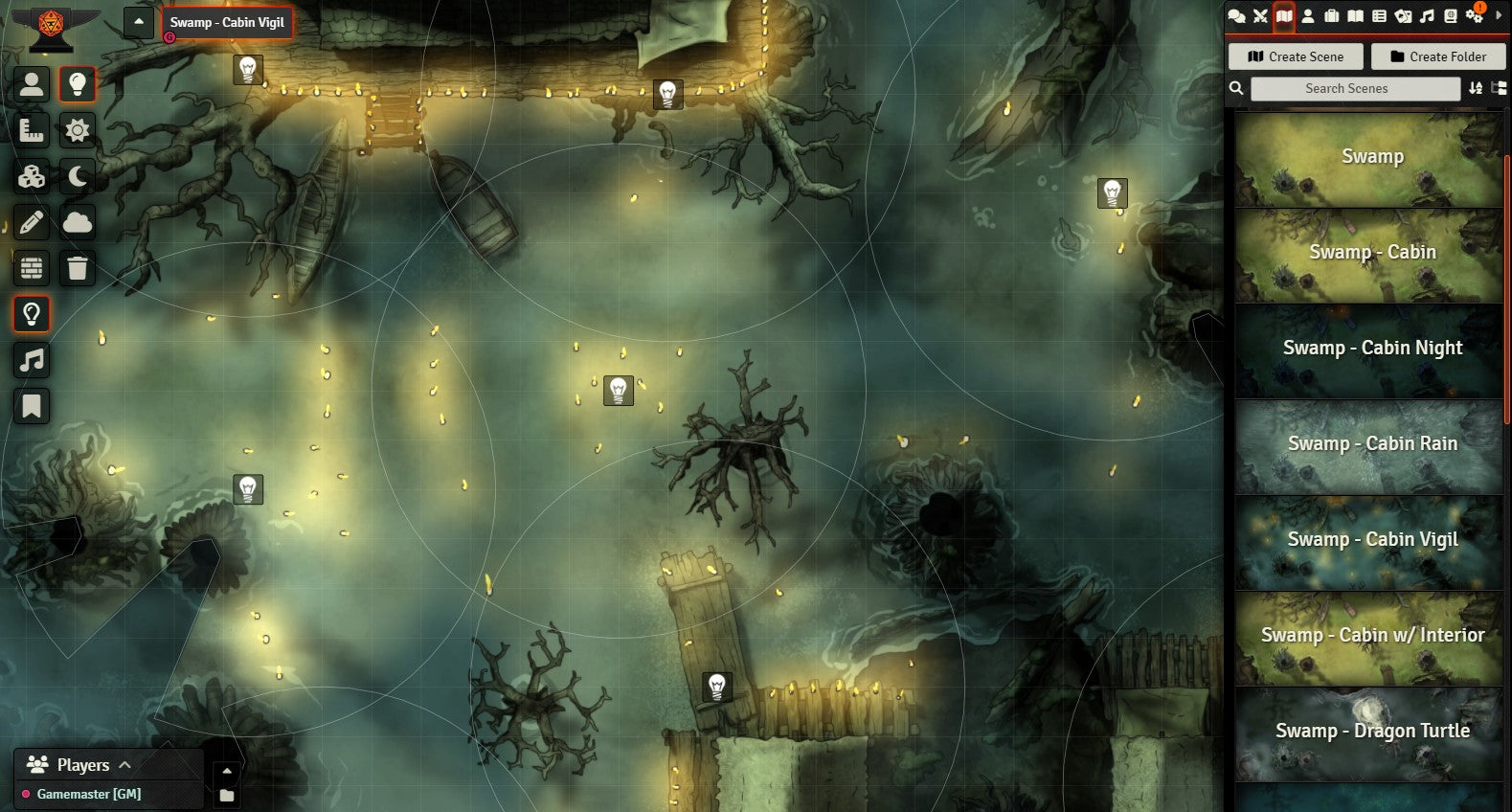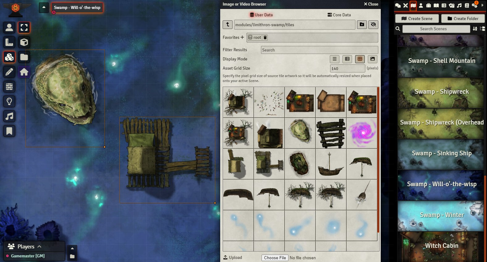 Plus I've included 29 PNG assets – shipwrecks, will-o-the-wisps, the witch's cabin, and more – to make your swamp encounter a unique experience. There are versions in here for lots of different scenarios and settings, as well as easter eggs for fans of The Neverending Story, Empire Strikes Back, and Dead Man's Chest.