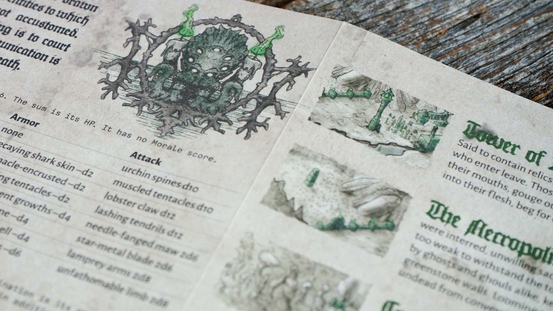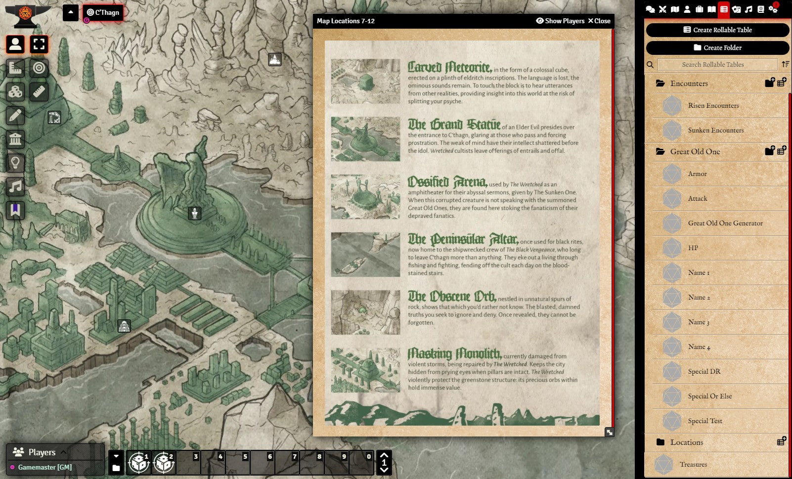 "The damned and blasphemous city of C’thagn is risen from the depths of the ocean. Regurgitated by the frothing waves, long since tired of its noisome aura.