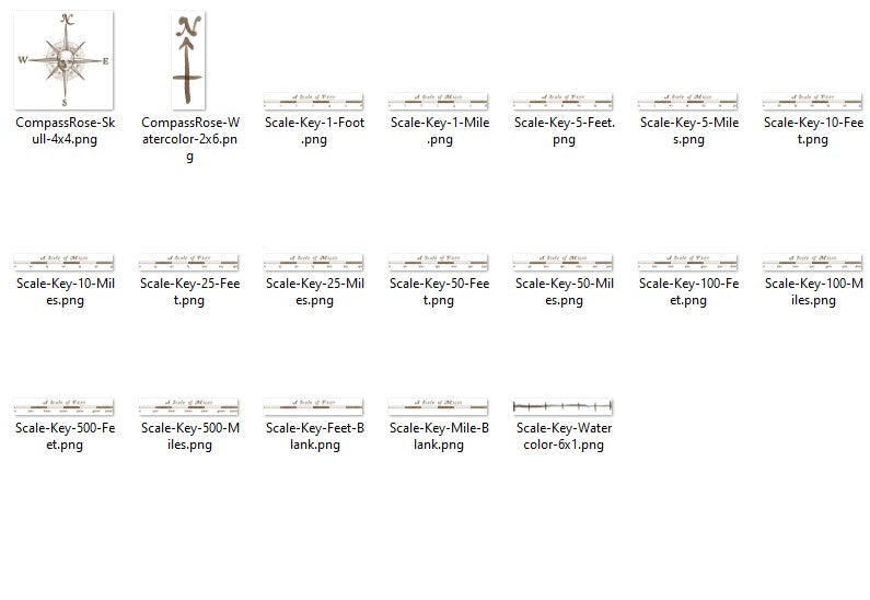 - 19 Compass Roses and Scales (various feet and mile scales)