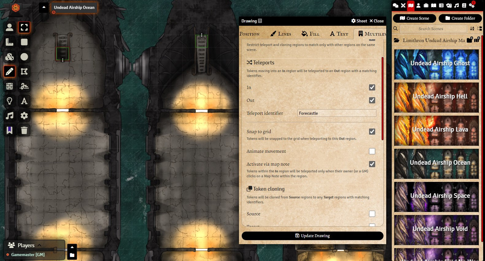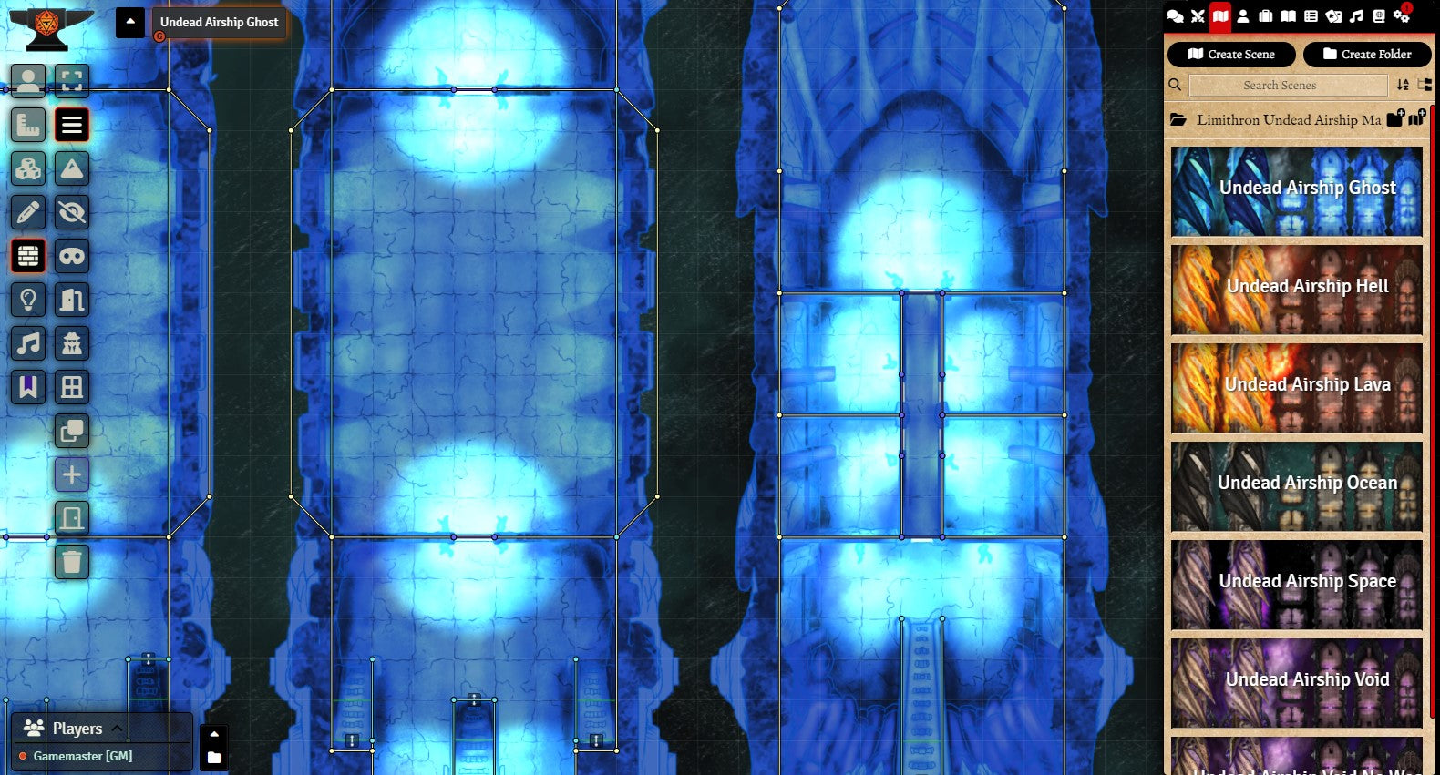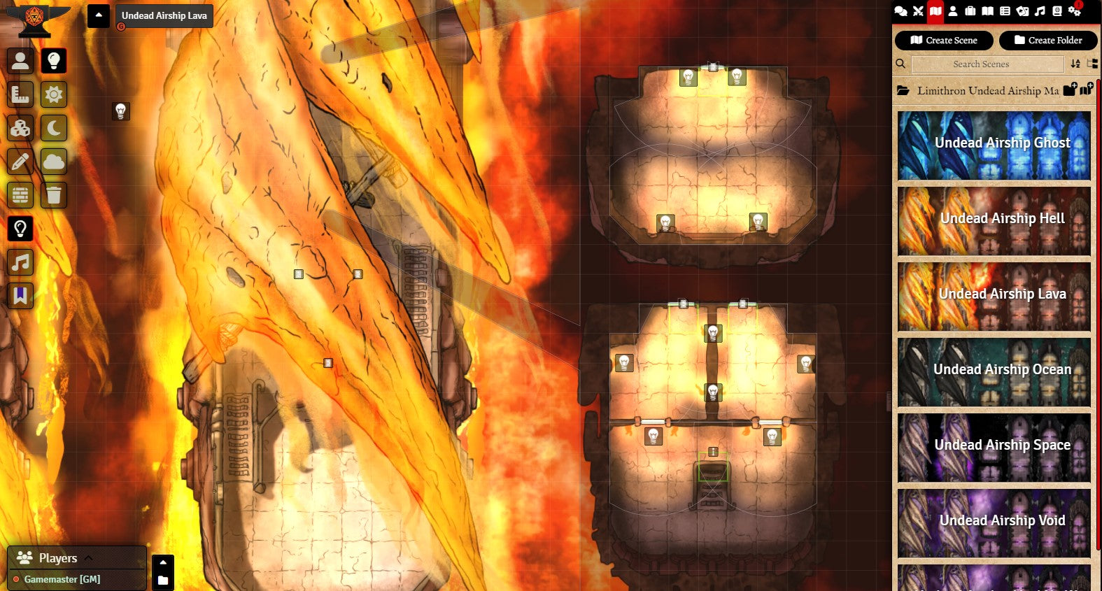 v11. As always, I offer a preset Foundry module this map set, ready to play – walls, lighting, and sound effects already taken care of. This module requires Multilevel Token to move the players between decks.